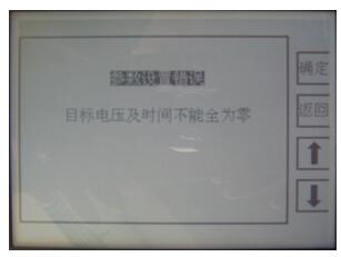4.目標(biāo)電壓及耐壓時(shí)間至少有一個(gè)階段不全為零,否則在開始試驗(yàn)時(shí)出現(xiàn)如下提示界面: