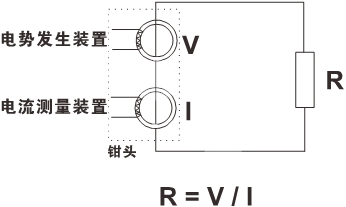 見下圖。鉗表的鉗口部分由電壓線圈及電流線圈組成。電壓線圈提供激勵信號,并在被測回路上感應(yīng)一個電勢V。在電勢V的作用下將在被測回路產(chǎn)生電流I。鉗表對V及I進(jìn)行測量,并通過下面的公式即可得到被測電阻R。